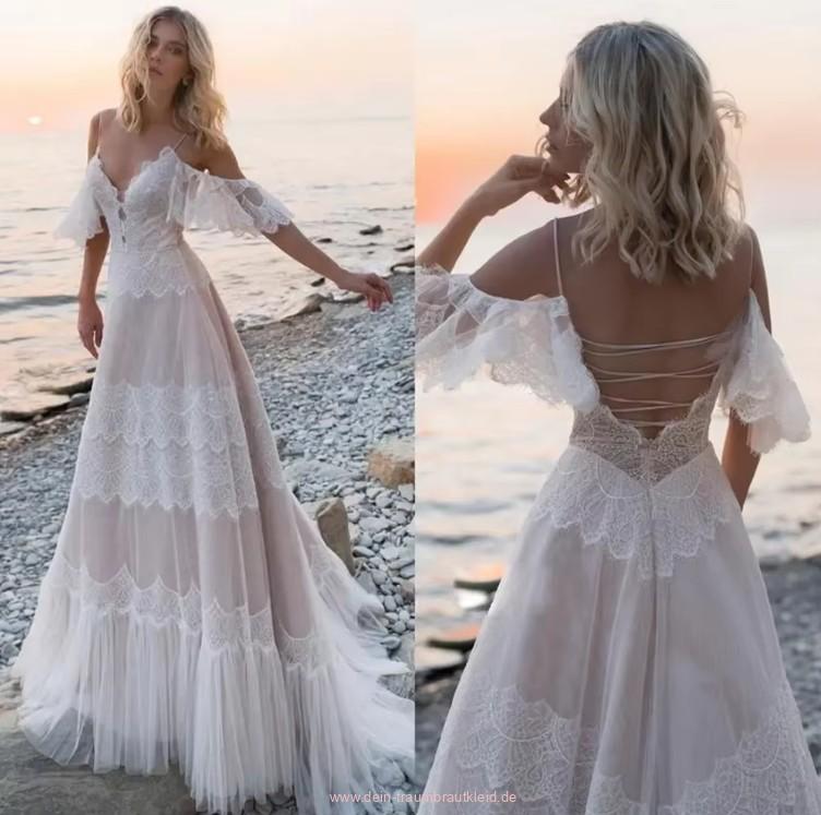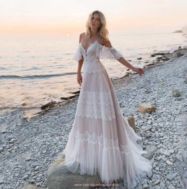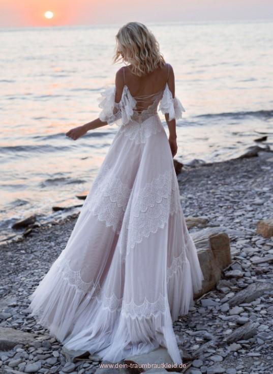 Einführung » Brautmode 2026 » A Linie Boho Brautkleid Jamila mit Spaghetti Träger
