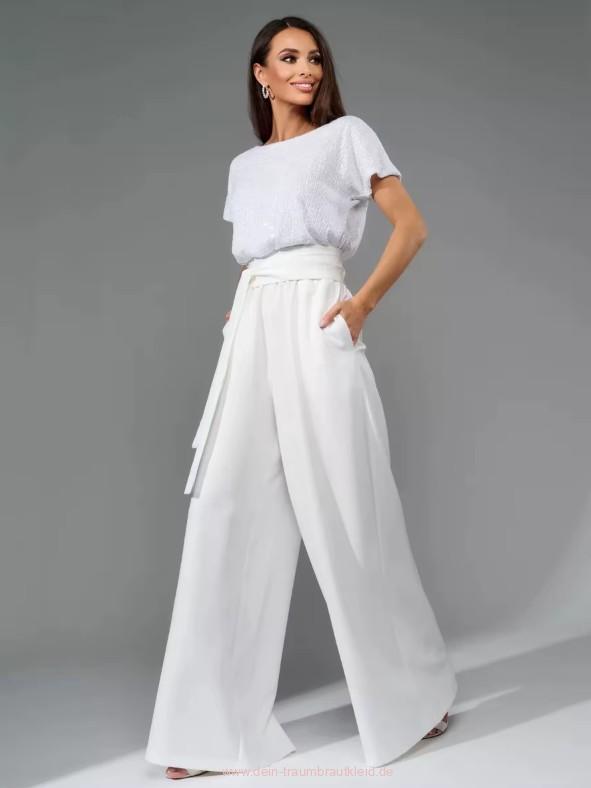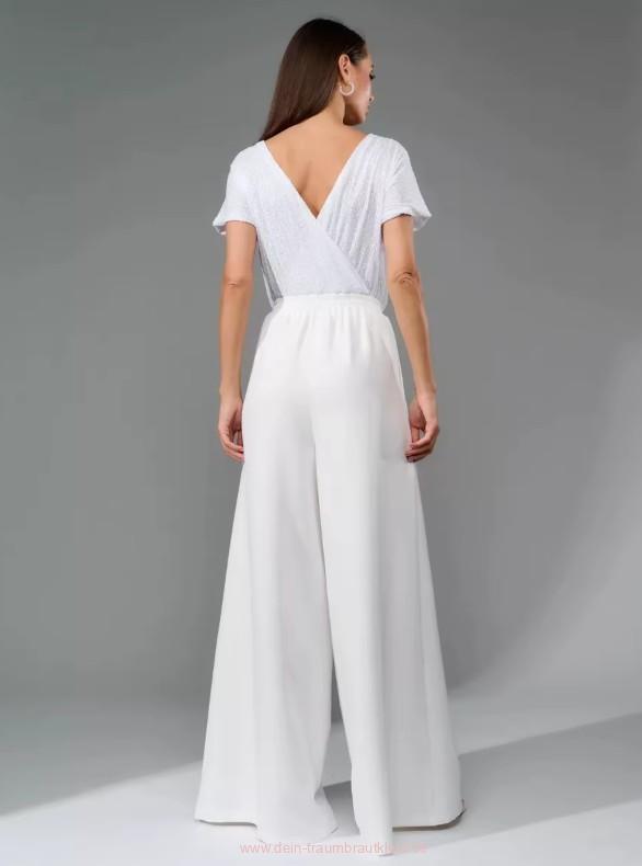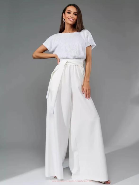 Einführung » Brautmode 2026 » A Linie Braut Einteiler Overall für den Standesamt in Weiß mit Glitzer Oberteil