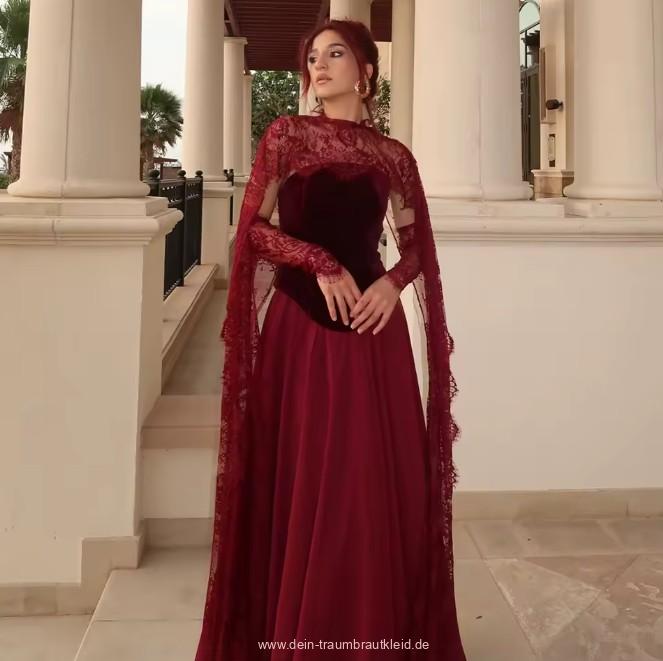 Einführung » Brautmode 2025 - 2026 » A Linie Brautkleid Jenna in Dunkelrot mit Cape aus Spitze