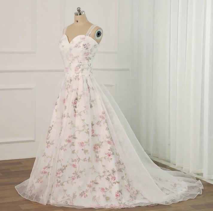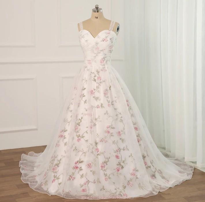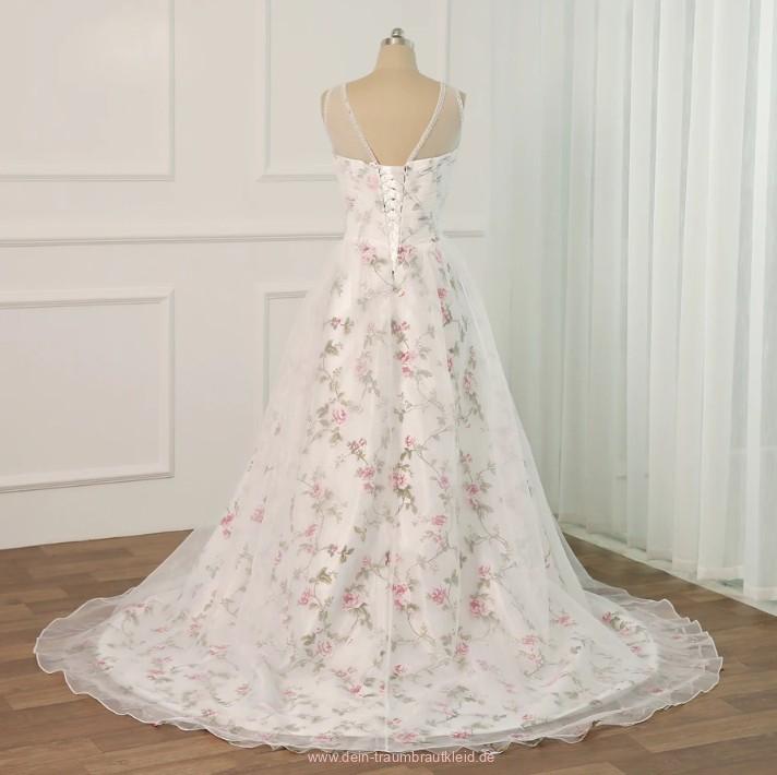 Einführung » Brautmode 2025 - 2026 » A Linie Brautkleid Jolyne mit Pinselscheleppe und Bunte Blumen