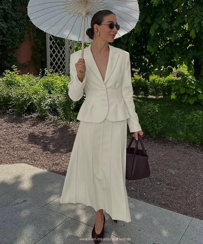 Einführung » Brautmode 2025 - 2026 » A-Linie Damen Kostüm für die Braut Joyce Wadenlang in Weiß
