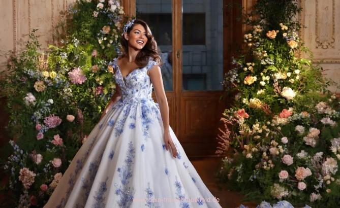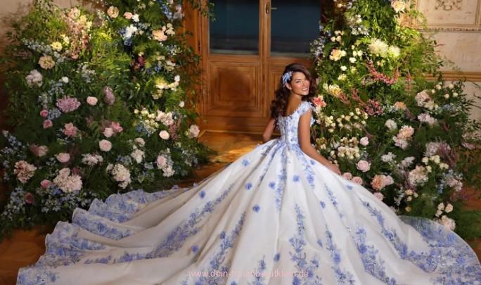 Einführung » Brautmode 2025 - 2026 » A Linie Prinzessin Brautkleid Julianne mit Blaue Blumen Stickereien und Schleppe