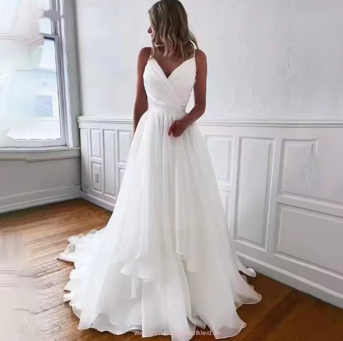 A Linie Spaghettiträger Brautkleid Jeanette Bodenlang mit Volants