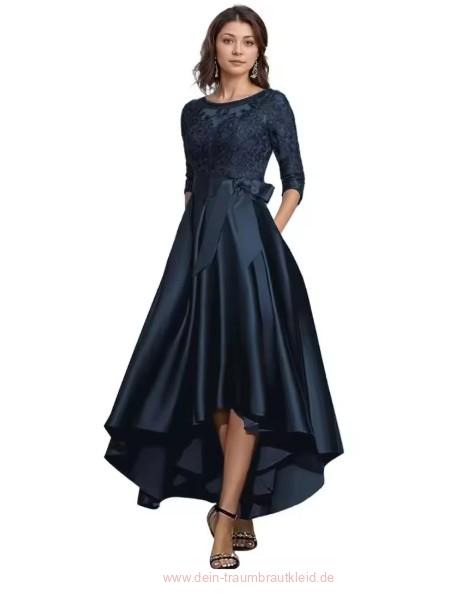 Einführung » Brautmode 2026 » A Linie Vokuhila Kleid Jean Elegant für Hochzeitsgäste in Dunkelblau mit Spitze