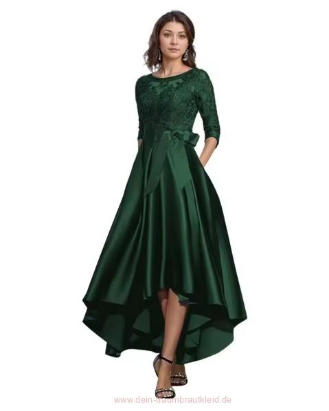 A Linie Vokuhila Kleid Jean Elegant für Hochzeitsgäste in Dunkelgrün mit Spitze