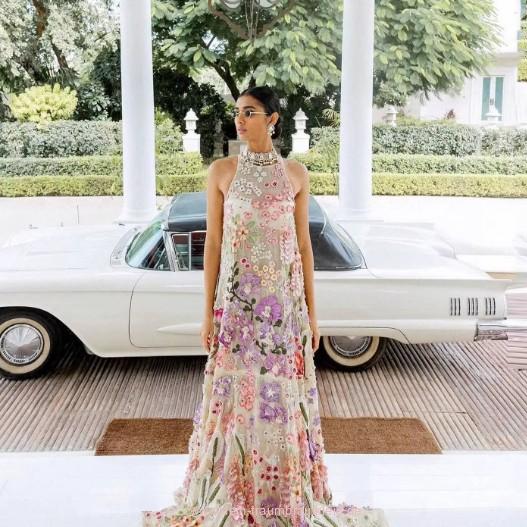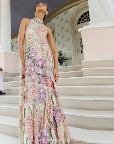 Einführung » Brautmode 2025 - 2026 » Ärmelloses A-Linie Brautkleid Bodenlang mit 3D-Blumenperlen
