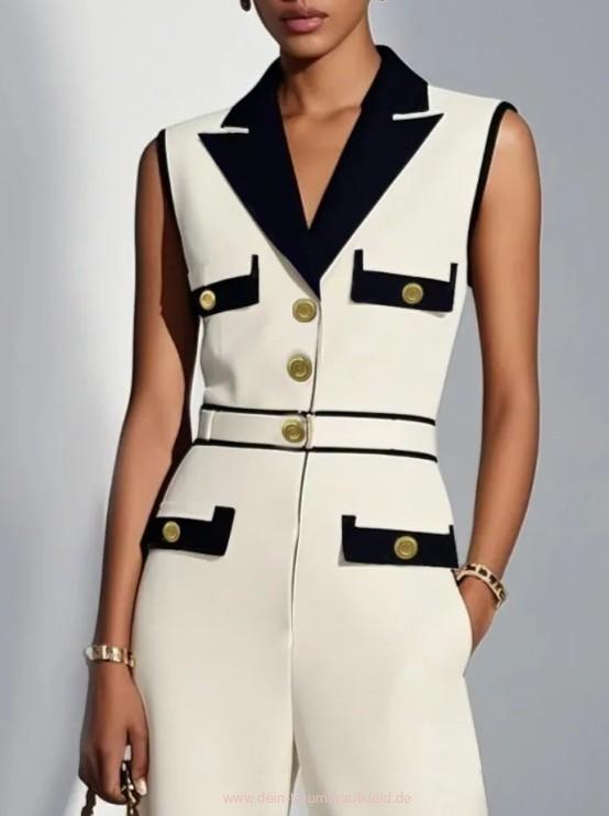 Ärmelloses Braut Overall Einteiler Innozentia für den Standesamt Weiß Schwarz