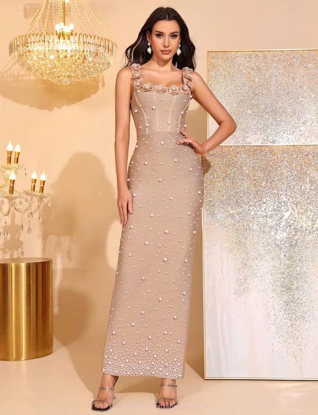 Einführung » Brautmode 2026 » Ärmelloses Etui Standesamt Brautkleid Iolana in Champagne mit Blumen und Perlen Applikationen