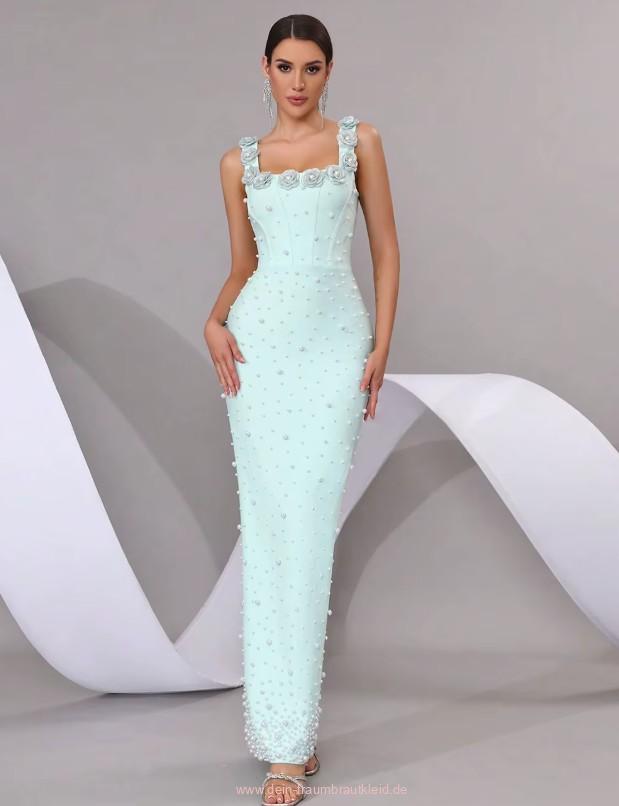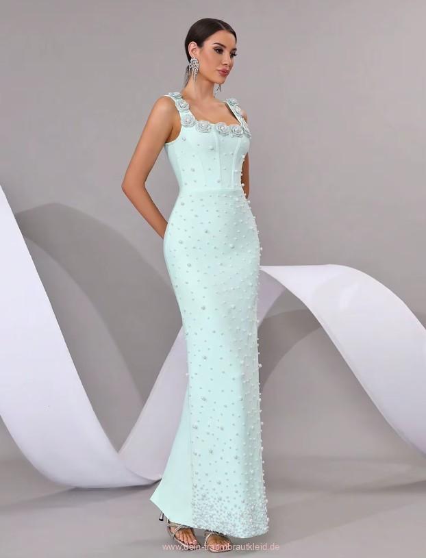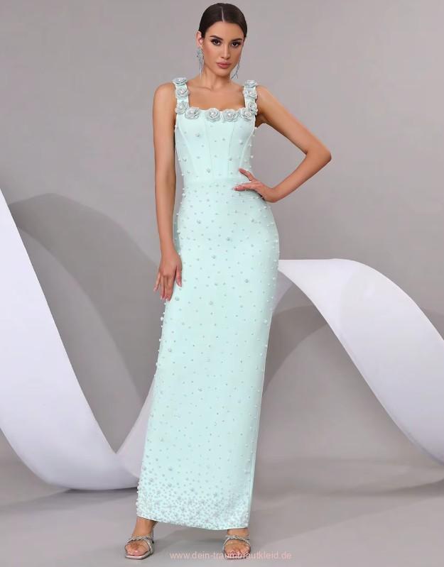 Ärmelloses Etui Standesamt Brautkleid Iolana in Hellgrün mit Blumen und Perlen Applikationen