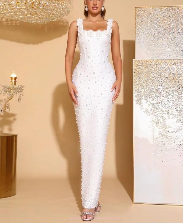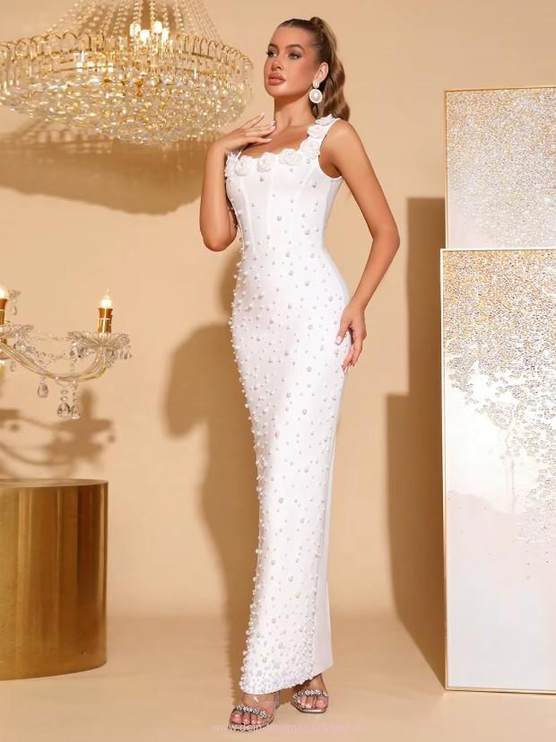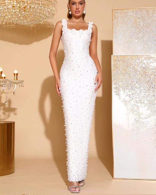 Einführung » Brautmode 2026 » Ärmelloses Etui Standesamt Brautkleid Iolana mit Blumen und Perlen Applikationen
