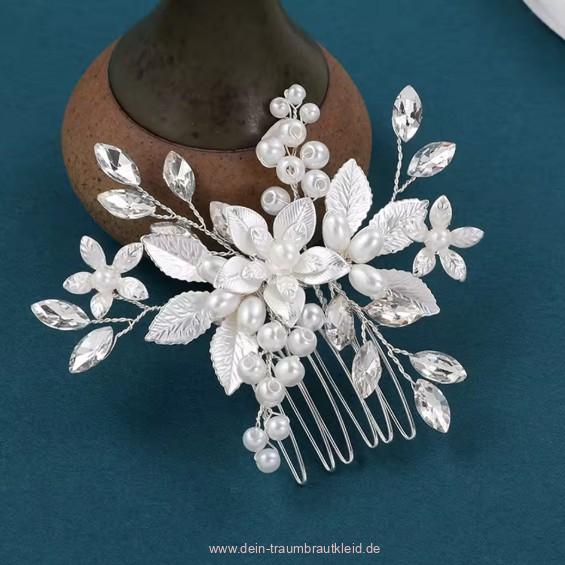Blumen Braut Haarkamm Jordan mit Strass und Perlen