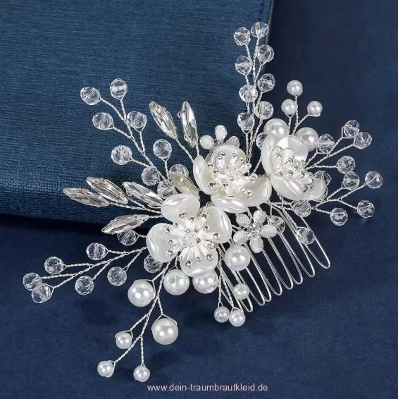 Blumen Braut Haarkamm Jordana mit Strass und Perlen