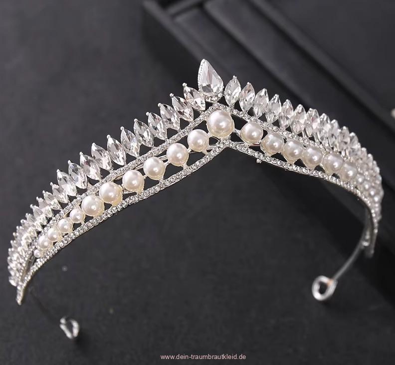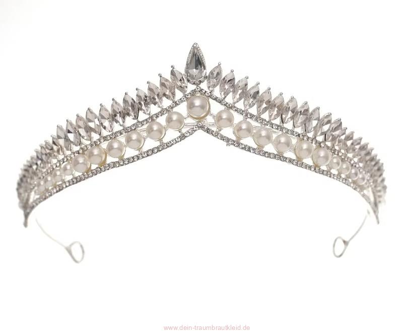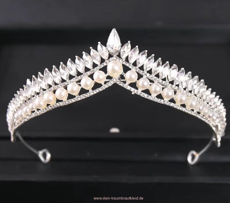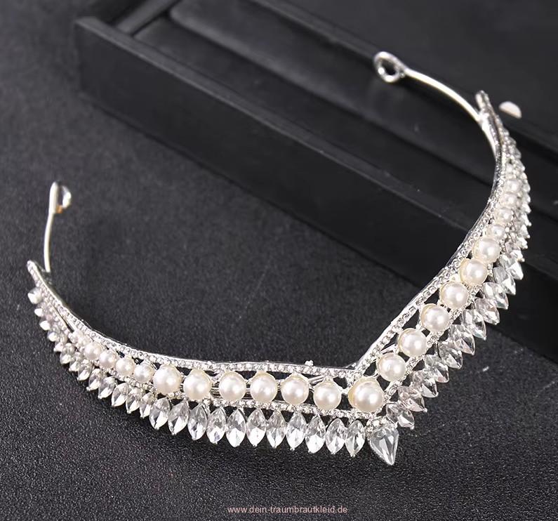 Braut Zirkon Tiara Jale mit Kristall und Perlen