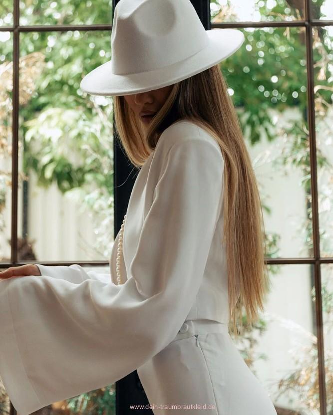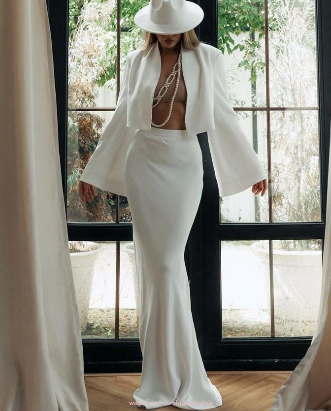 Einführung » Brautmode 2025 - 2026 » Braut Zweiteiler Outfit Jocelyne für den Standesamt Lang in Weiß