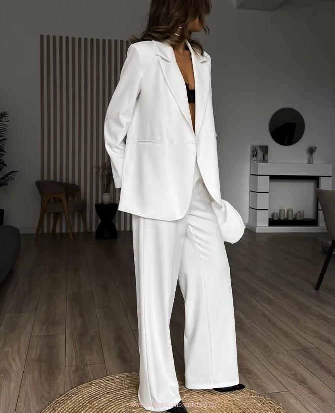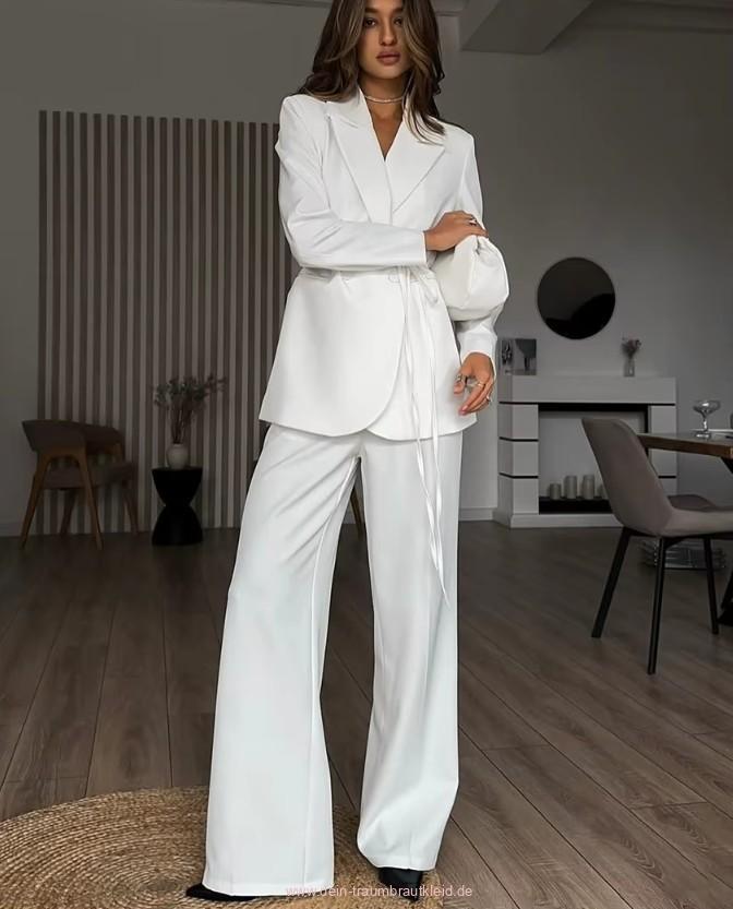 Einführung » Brautmode 2025 - 2026 » Braut Zweiteiler Outfit Jonna für den Standesamt Weißer Hosenanzug für die Braut