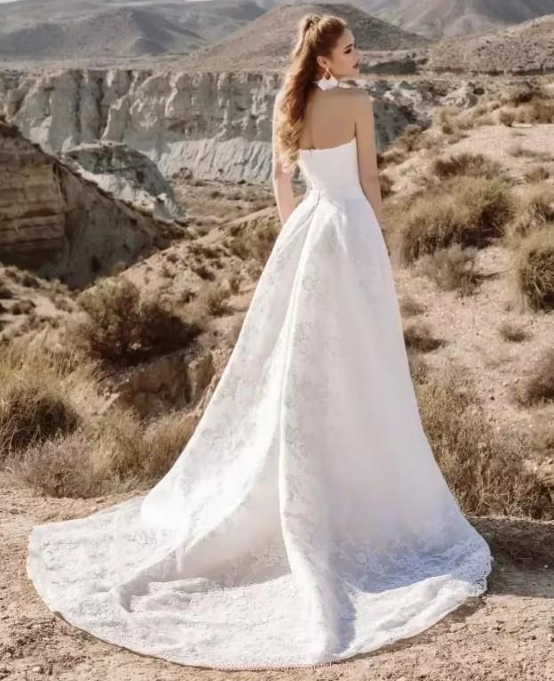 Einführung » Brautmode 2025 - 2026 » Fashion Hochzeits Overall Jumpsuit Einteiler Jade für die Braut mit Spitzen Schleppe