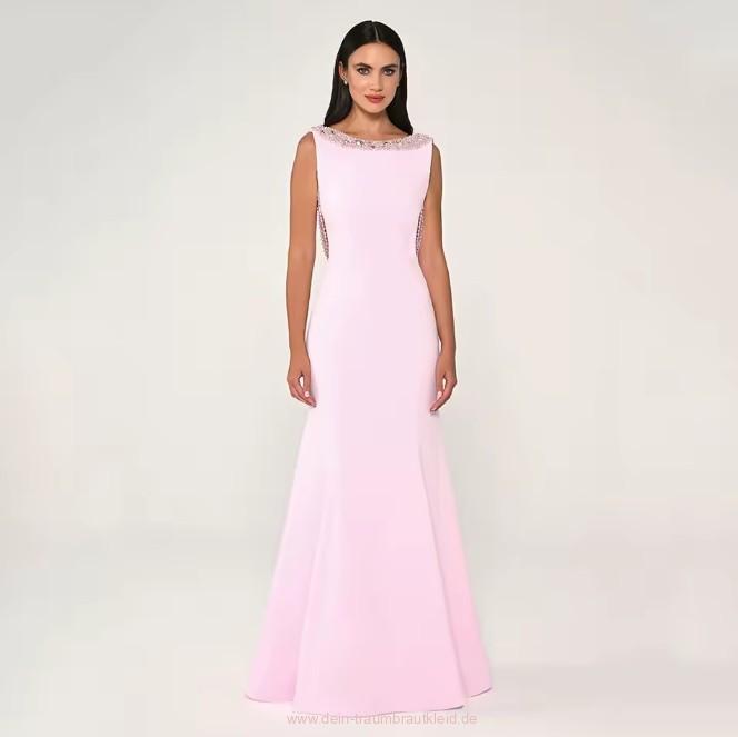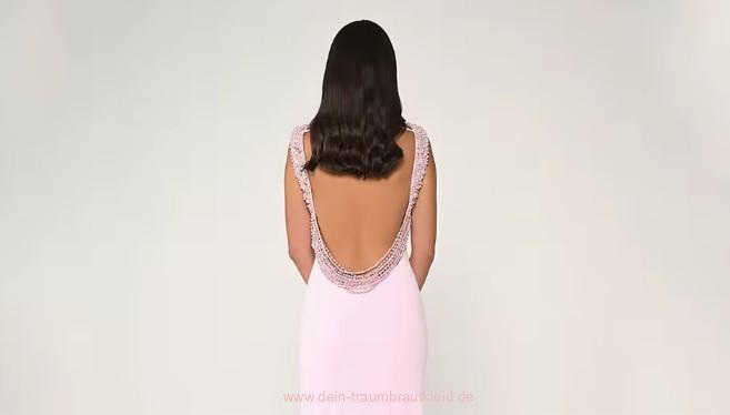 Einführung » Brautmode 2025 - 2026 » Fit and Flare Brautkleid Joline in Zartrosa mit Rücken Ausschnitt und Perlen Strass Applikationen