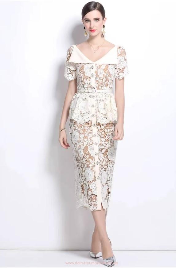 I Linie Kurzarm Standesamt Brautkleid Gunda Wadenlang aus Spitze Elfenbein