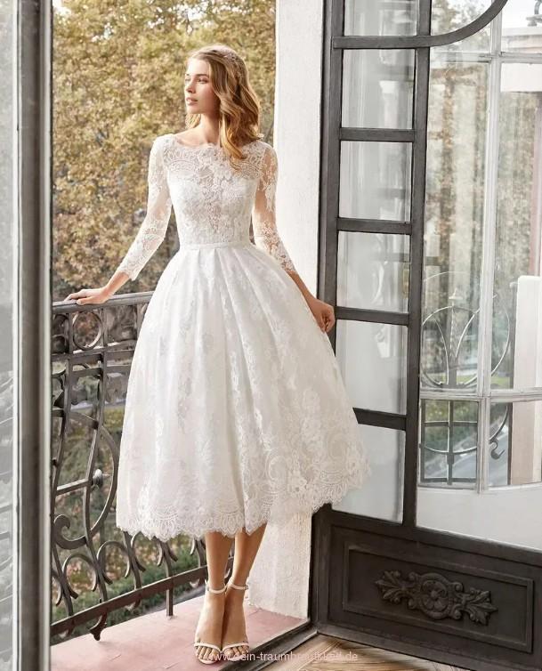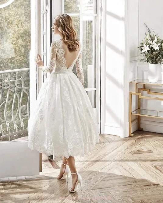 Einführung » Brautmode 2026 » Kurzes A Linie Brautkleid Janna Wadenlang mit Rücken Ausschnitt