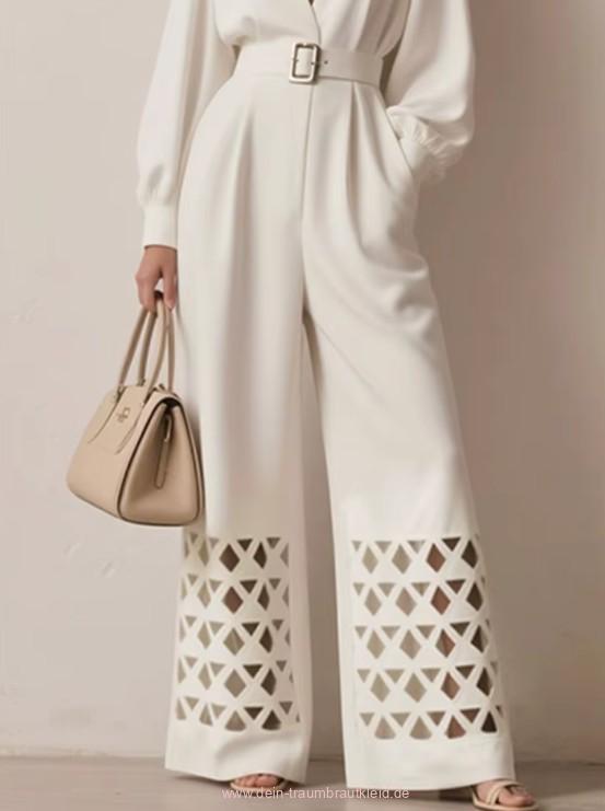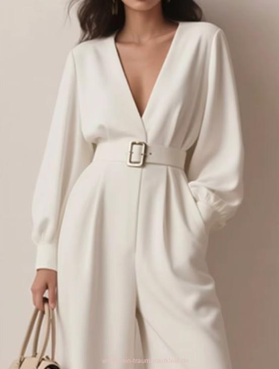 Einführung » Brautmode 2026 » Langarm Braut Overall Einteiler Inken mit Sexy V Ausschnitt und Cut Outs