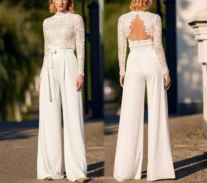 Einführung » Brautmode 2025 - 2026 » Langarm Braut Overall Einteiler Jade mit Rückenausschnitt