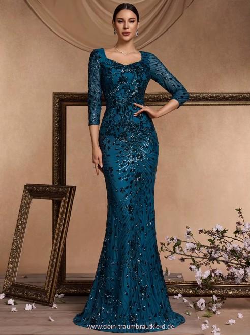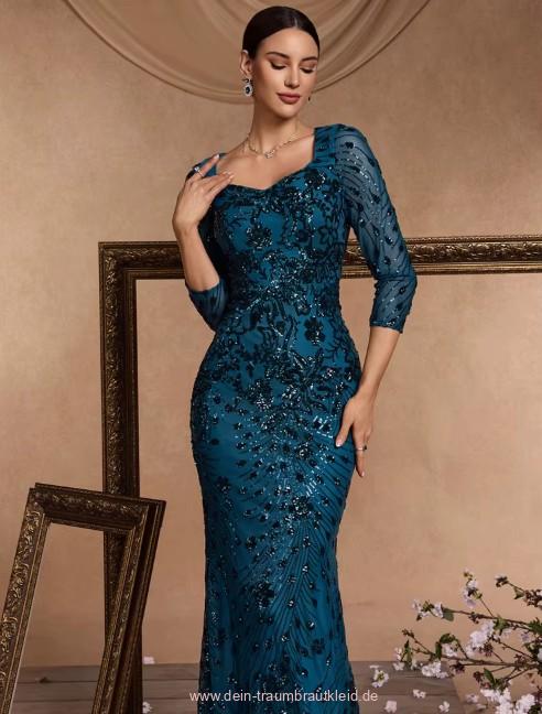 Einführung » Brautmode 2026 » Langarm Fit and Flare Abendkleid Jarina für Hochzeitsgäste Blau