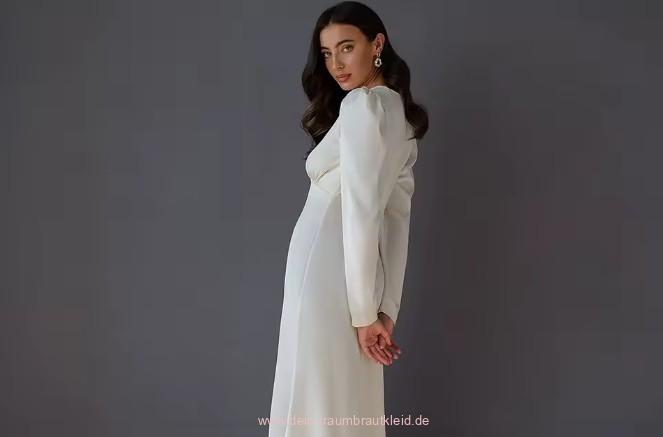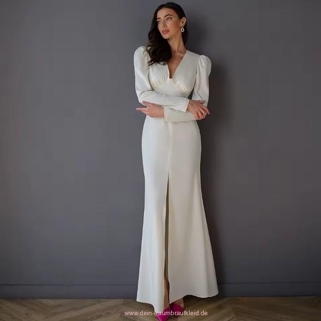 Langarm Fit and Flare Standesamtkleid Irmgard mit Sexy Schlitz