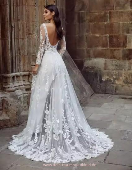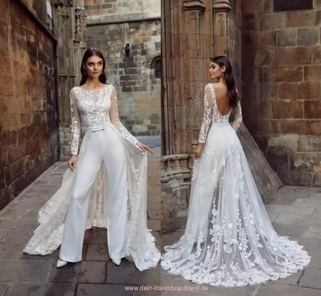 Langarm Hochzeitsoverall Kennya mit Abnehmbarer Schleppe