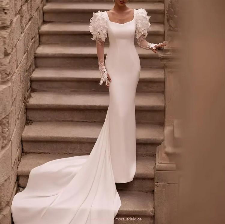 Langarm I Linie Brautkleid Josephina mit Spitze und Schleppe