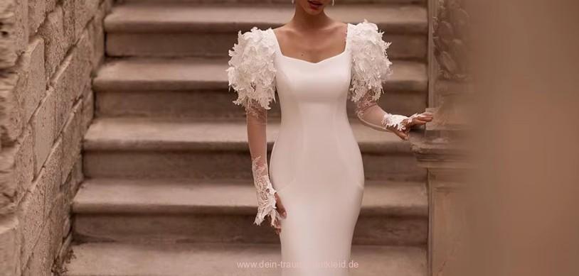 Einführung » Brautmode 2026 » Langarm I Linie Brautkleid Josephina mit Spitze und Schleppe