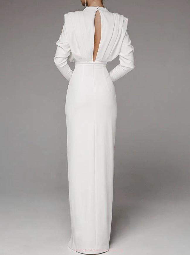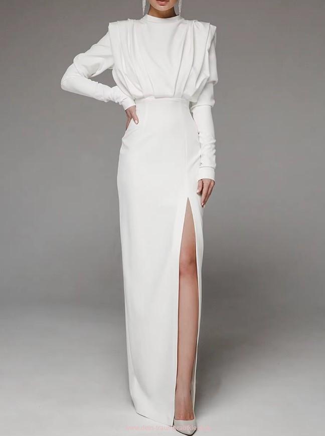 Langarm Standesamtkleid Catharina mit Schlitz Hochgeschlossen