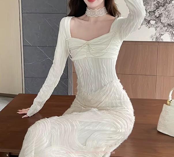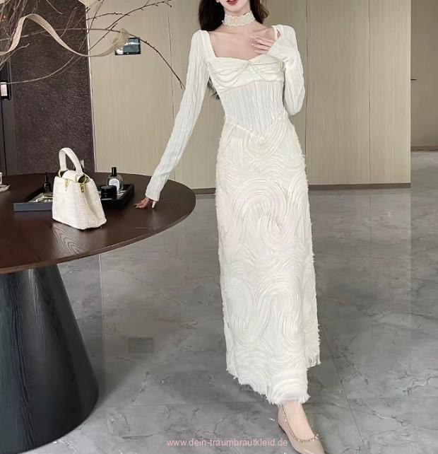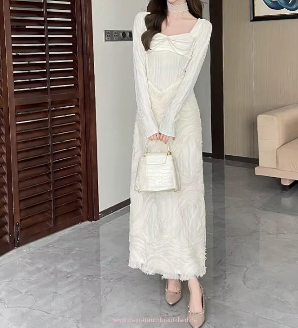 Langarm Standesamtkleid Inessa Knöchellang mit Applikationen
