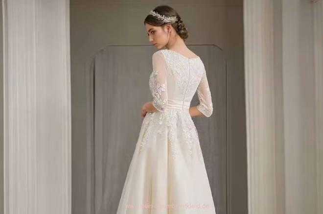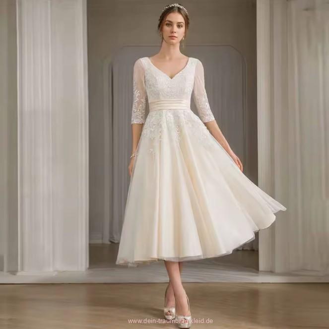 Einführung » Brautmode 2026 » Langarm Vintage Stil Brautkleid Isabell mit Spitze Wadenlang