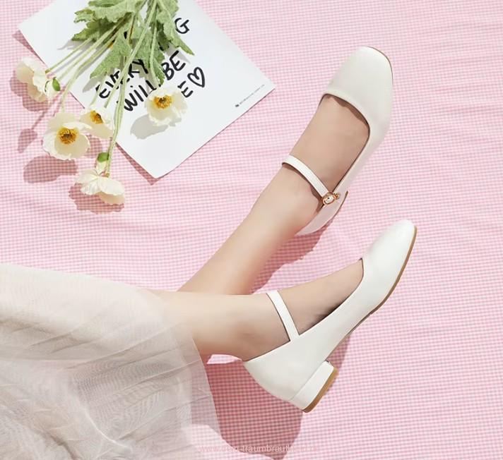 Mary Jane Brautschuhe mit Riemchen in Weiß
