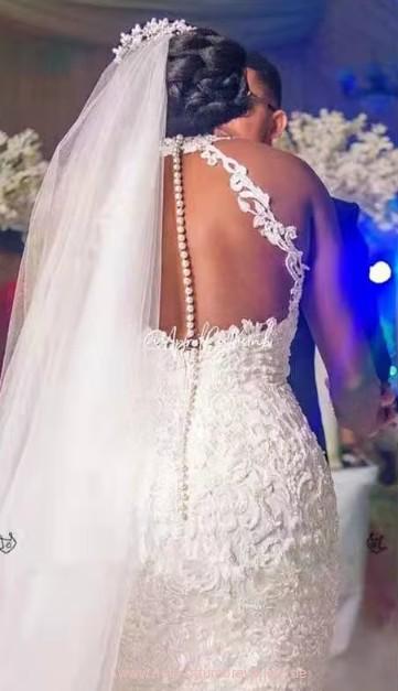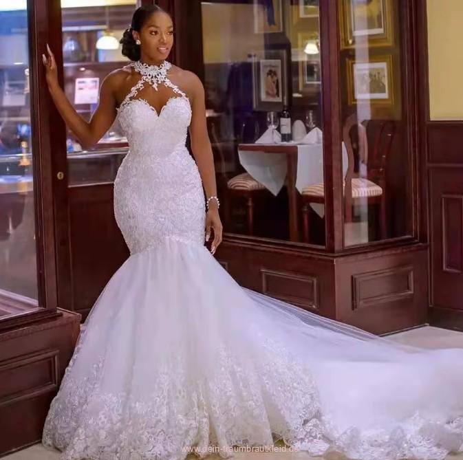 Meerjungfrau Brautkleid Imilia mit Spitze Perlen und Schleppe