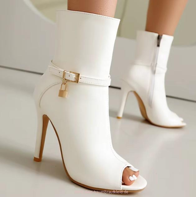 Einführung » Brautmode 2026 » Peep Toe Braut Stiefeletten Isabelle Weiß