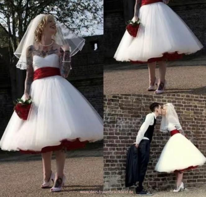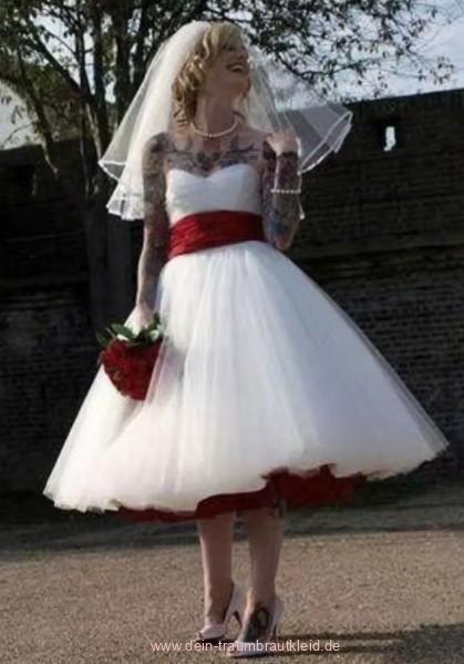 Rockabilly Brautkleid Janine Wadenlang mit Rote Schärpe