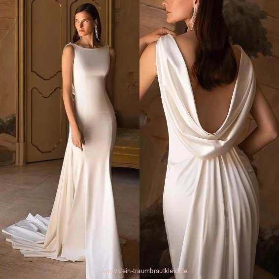 Schlichtes A Linie Brautkleid Janique mit Schleppe und Rückenausschnitt