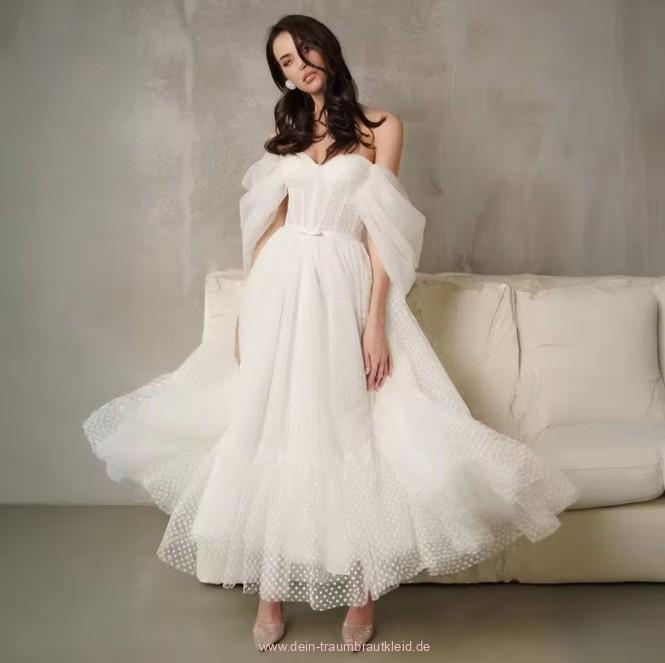 Schulterfreies Boho Stil Standesamt Brautkleid Janine