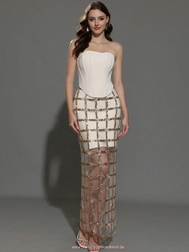 Einführung » Brautmode 2025 - 2026 » Schulterfreies I-Linie Standesamt Brautkleid Jeanne mit Pailletten Applikationen