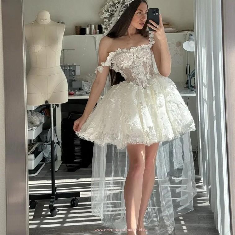 Schulterfreies Mini Brautkleid Ineke mit Spitze und Lingerie Oberteil