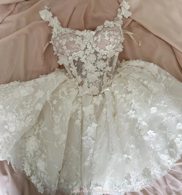 Einführung » Brautmode 2026 » Schulterfreies Mini Brautkleid Ineke mit Spitze und Lingerie Oberteil