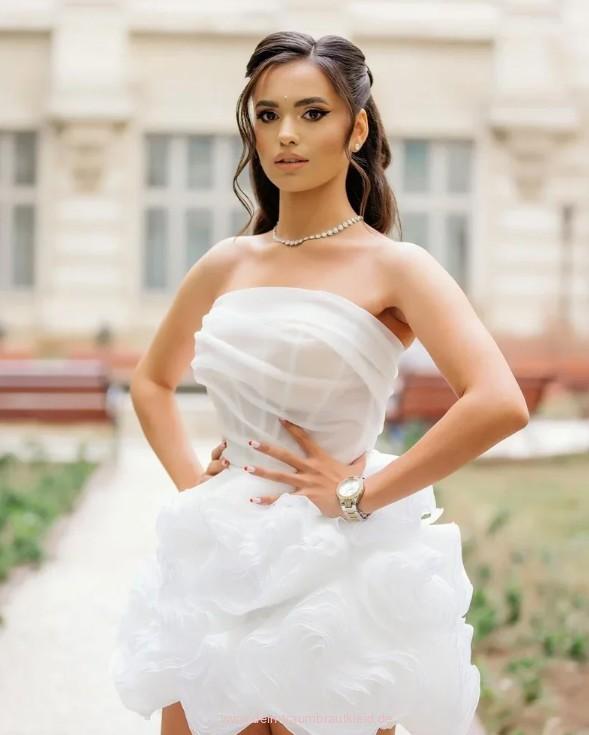 Einführung » Brautmode 2026 » Schulterfreies Mini Brautkleid Janneke mit Volants