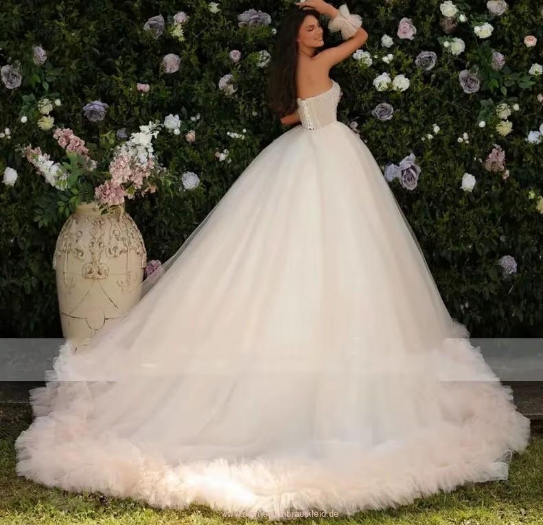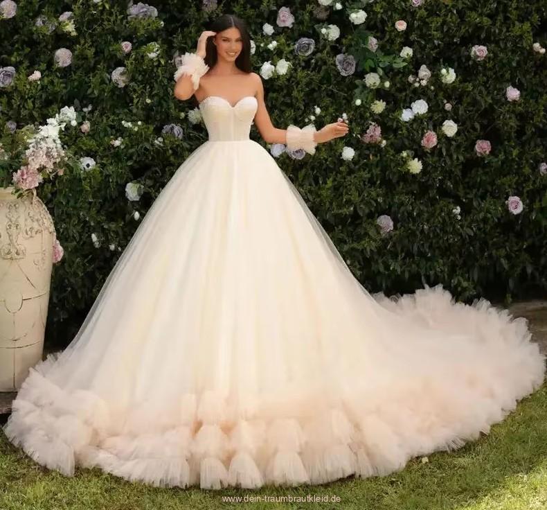 Einführung » Brautmode 2026 » Schulterfreies Prinzessin Brautkleid Julia mit Volants und Schleppe