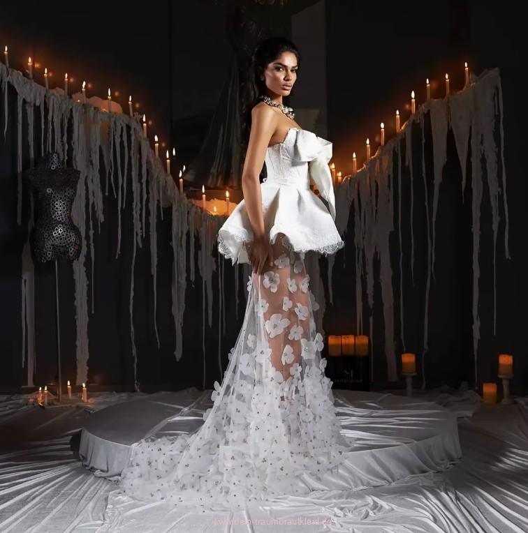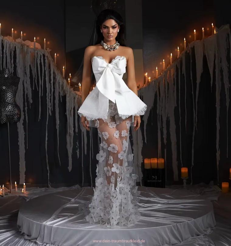 Einführung » Brautmode 2026 » Schulterfreies Sexy Fit and Flare Brautkleid Indra mit 3D Blumen