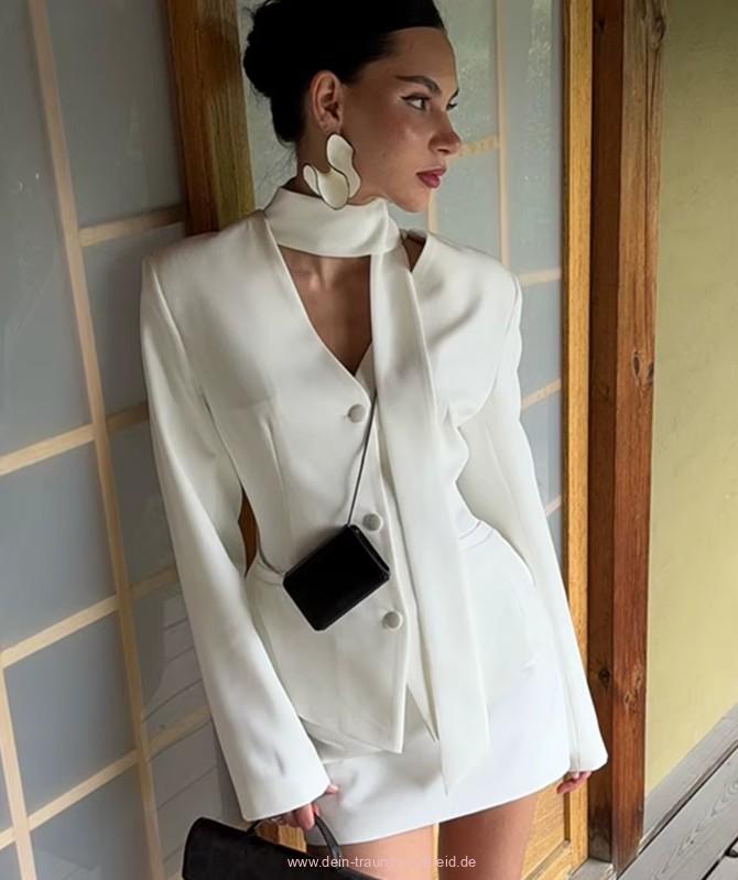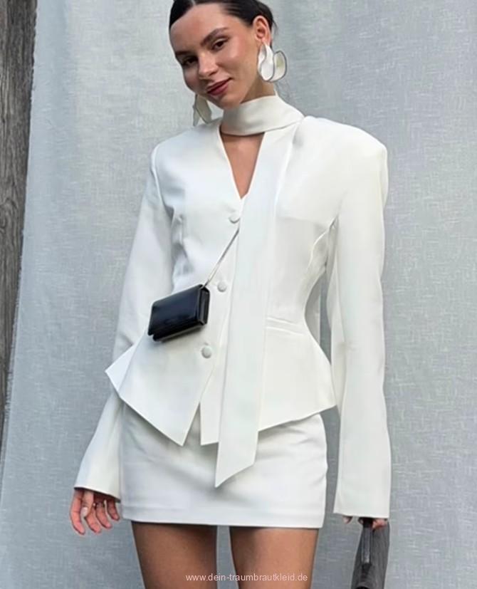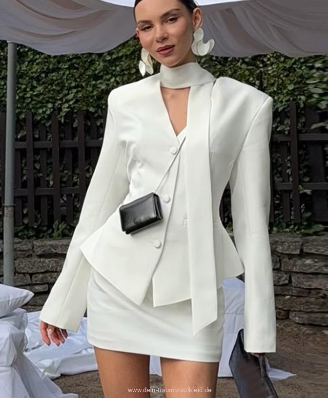 Einführung » Brautmode 2025 - 2026 » Sexy Braut Kostüm Kurz für den Standesamt in Weiß