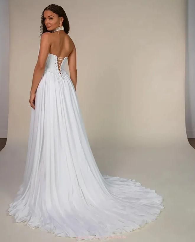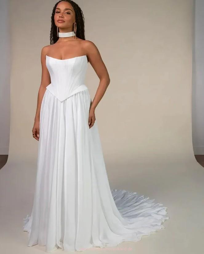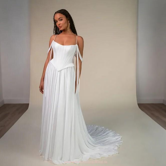 Spaghettiträger Brautkleid Jackline mit Korsage Oberteil und Schleppe