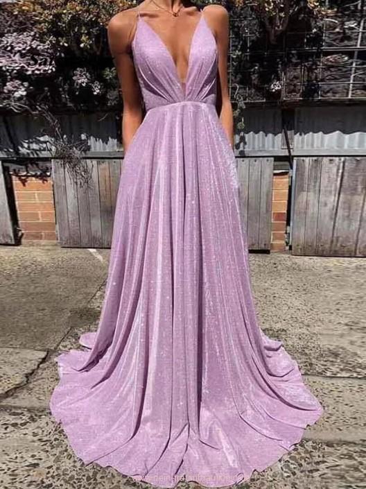 Einführung » Kleider für Hochzeitsgäste » Spaghettiträger Kleid Jasmina für Hochzeitsgäste in Flieder mit Sexy Rückenausschnitt