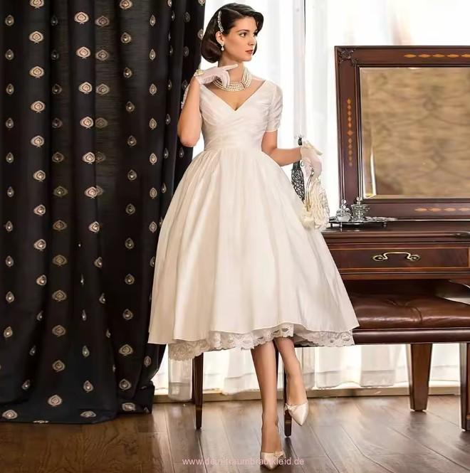 Einführung » Brautmode 2026 » Vintage Stil Kurzarm Brautkleid Janina Wadenlang mit Spitze