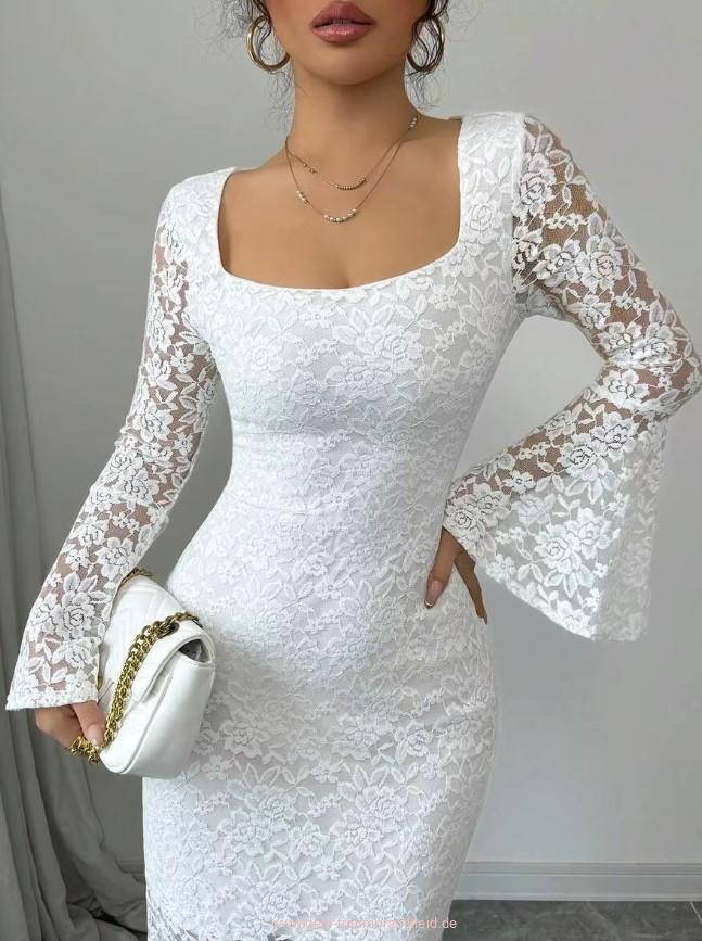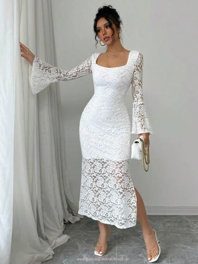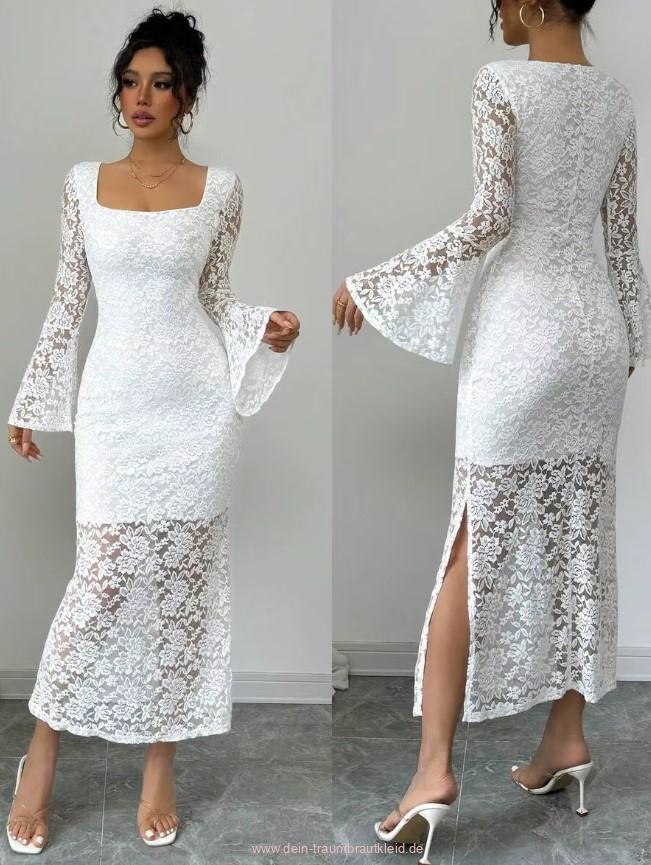 Einführung » Brautmode 2026 » Wadenlanges Standesamt Brautkleid mit Ärmel aus Spitze